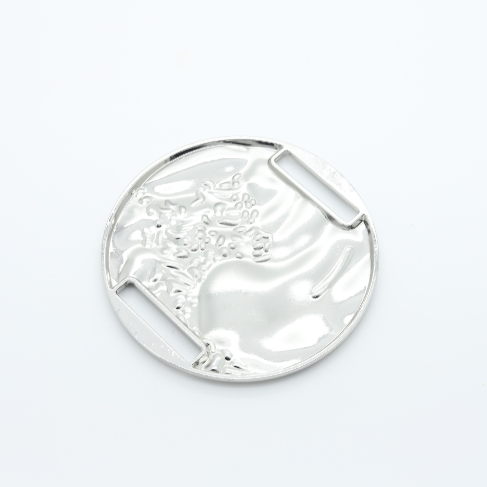Gran lazo redondo de metal plateado con estructura en relieve
