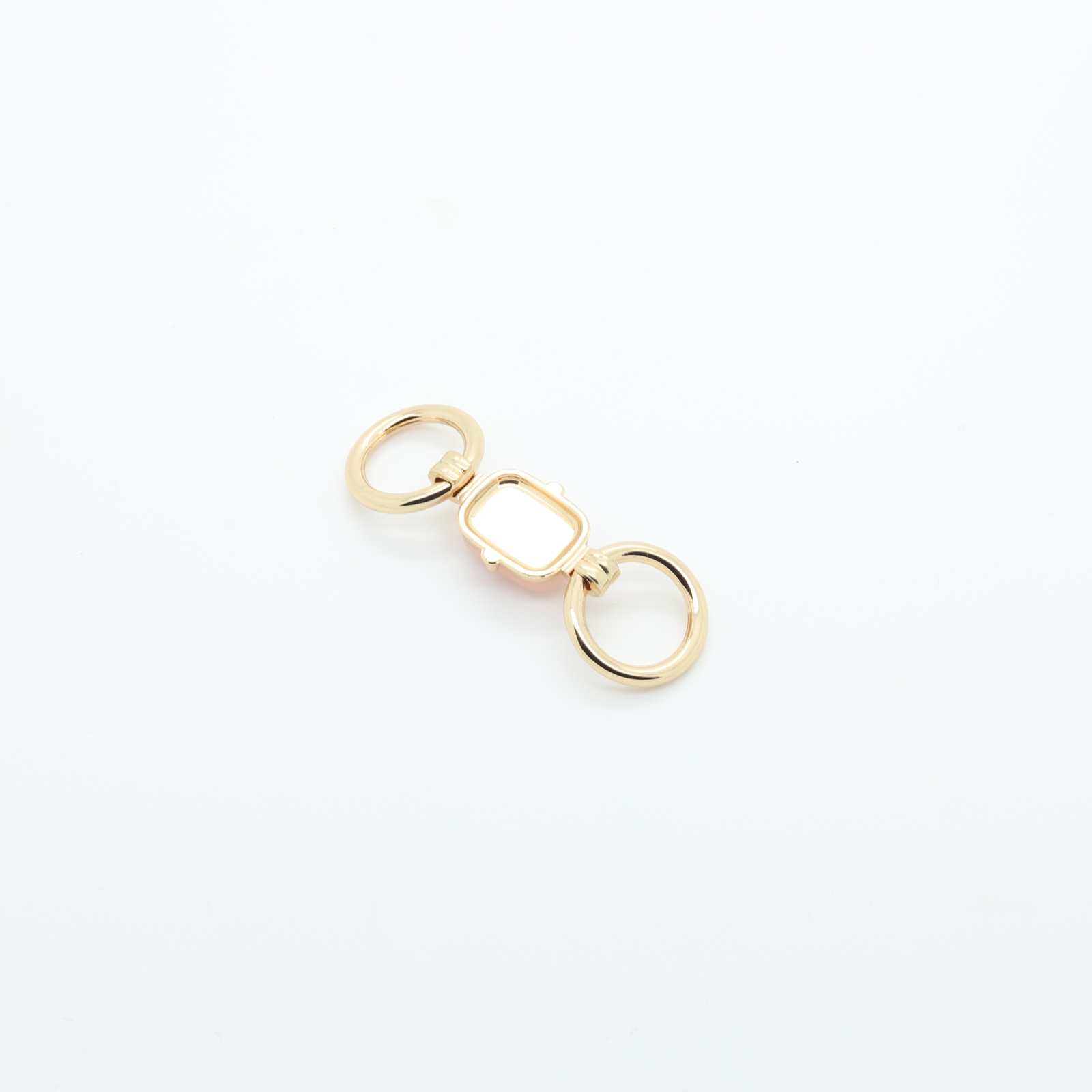 Conector em metal dourado com duas argolas - Pedra rosa natural no centro